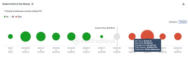 然而,战略多头将警惕最初的 1,900 美元阻力位。如下图,900万个钱包以1910美元的最低价格购买了3600万个ETH。如果他们在盈亏平衡时平仓,以太坊可能会进入温和回调。