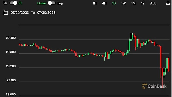 周末大部分时间,比特币价格一直稳定在 29,300 美元上方徘徊,但在 Curve Finance 发推文称其遭遇违规后的几个小时内,比特币价格下跌。