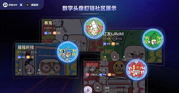 经过导入绑定验证后,可以在盯链社区中将头像切换为数字头像展示,使用中的数字头像有区别于普通头像的特殊效果!