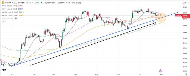 比特币 2023 年强劲的上升趋势目前仍然完好无损,尽管该加密货币正在接近 28,000 美元中期的关键支撑位,这将使这一上升趋势受到考验。