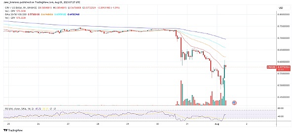 截至发稿时,Curve (CRV) 价格在过去三个小时内略有回升,升至 0.57 美元。