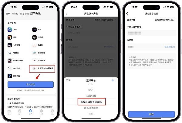 step3:输入敦煌灵境数字研究院注册手机号和验证码后,点击绑定即可
