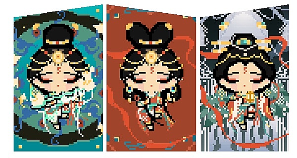 本次敦煌像素飞天PFP的设计,在包含着原有飞天传统元素的同时,也对平行元宇宙进行了一些拓展。每一份“像素飞天”均包括主体、眼眸、发髻、耳钉、飘带、头饰、浮层、背景等8个特征部位。同时,每个部位的不同组件之间存在出现概率的差异,既保证了每款“像素飞天”都独具特点,又兼顾了不同个体之间的稀缺性,为“像素飞天”赋予了更多不同的个性表达。即在原有的形象上,进行现代化的服装配饰更换,或者其他主题下的元素替代,通过这种设计延伸,希望在保留传统文化内核的同时,既可以实现PFP多样化,又可以链接现代潮流。为国内传统文化的数字艺术打造更多海外发展的可能,中国飞天的美学宝库待与您一同开启。