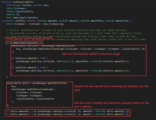在每次swap结束后都会触发此hook,根据当前价格区间将区间价格内存在的限价单完成添加流动性的操作。