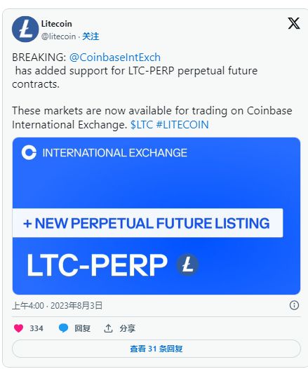 CoinBase 上架LTC 永续期货合约交易