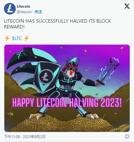 莱特币官方在减半发生后,也在第一时间发推祝贺此一重大事件的发生: