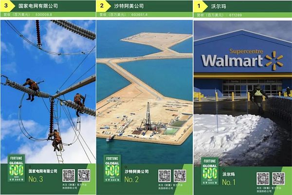 沃尔玛连续第十年成为全球最大公司。沙特阿美首次上升至第二位。中国的国家电网公司继续位列第三。排在第四和第五位的分别是亚马逊和中国石油。