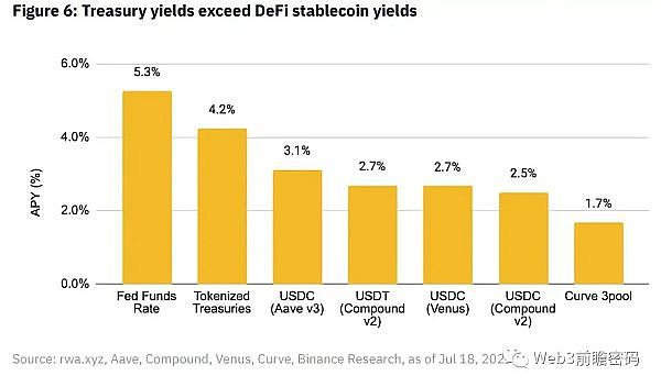 图 6:美国国债收益率超过 DeFi 稳定币