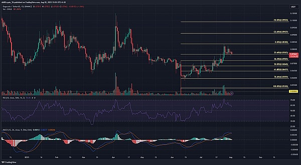 DOGE 继续从 6 月份的看跌趋势中恢复过来,该趋势跌至 0.053 美元的年度低点。这导致其在 7 月 21 日创下 0.083 美元的 7 月新高,并在突破之前的较低低点后,使 DOGE 在每日时间框架上转为看涨。