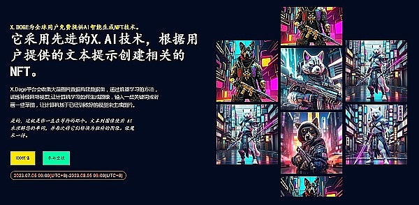 X.Doge为全球用户免费提供AI智能生成NFT技术。它采用先进的X.AI技术,根据用户提供的文本提示创建相关的NFT。X.Doge平台会收集大量图片数据构建数据集,通过机器学习的方法,训练神经网络模型,让计算机学习如何生成图像,输入一些关键词或者画一些草图,让计算机基于已经训练好的模型来生成图片。