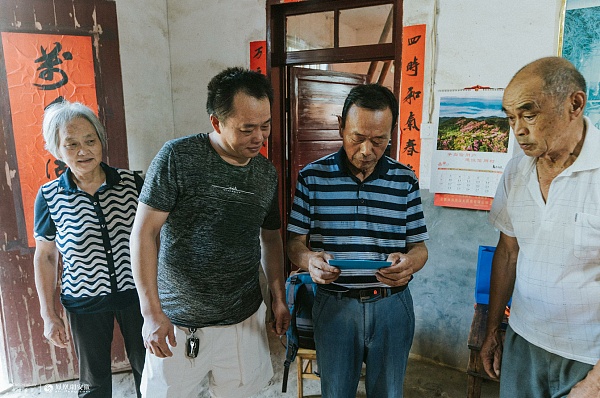 活动当天,在六安乡镇,中丞的志愿者跟随摄影师的脚步走入20户乡村振兴带头人家中,协助摄影师开展工作。乡亲们排坐在自家门前,穿上新衣服,和自己的妻子儿女、兄弟姐妹们端坐一堂,初次面对镜头的他们面露羞涩,但脸上洋溢的笑容还是那般幸福。不少村民表示,自己平日里很少拍照,即便拍也要去镇上或市里,这次能有上门的摄影师给一家人拍全家福,十分难得。