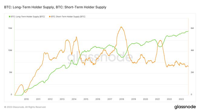 过去两年,长期持有者的实力不断增强,截至撰写本文时,其持有的比特币占流通中比特币的近 75%。结果,留给活跃交易者或短期持有者的供应急剧减少。