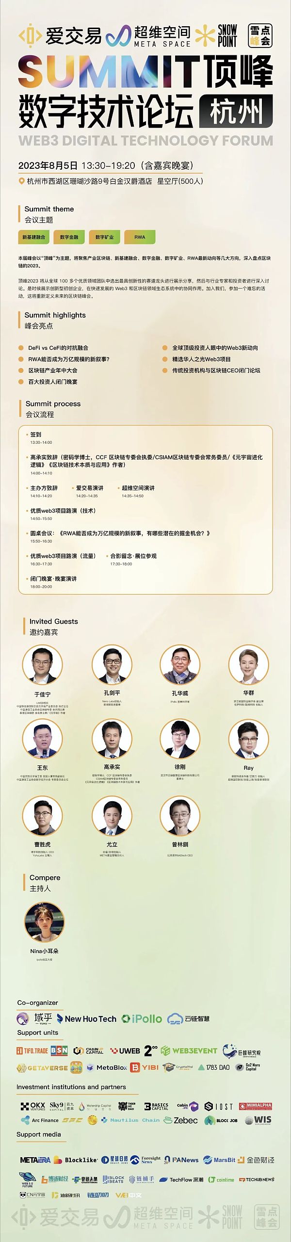 8月5日,由超维空间、爱交易与SnowPoint等单位联合主办,新火科技、iPollo、云链智慧、域乎科技等单位协办的Summit顶峰·Web3数字技术论坛在杭州圆满落下帷幕。