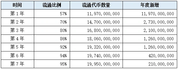根据此发行时间表,前1000天每月发行量约为27.4万枚,每年发行量约为328万枚,三年内总计发行986万枚,占三年后流通量的47%。如果按照12美元的价格计算,每月发行价值为328万美元,每年发行价值为3900万美元。