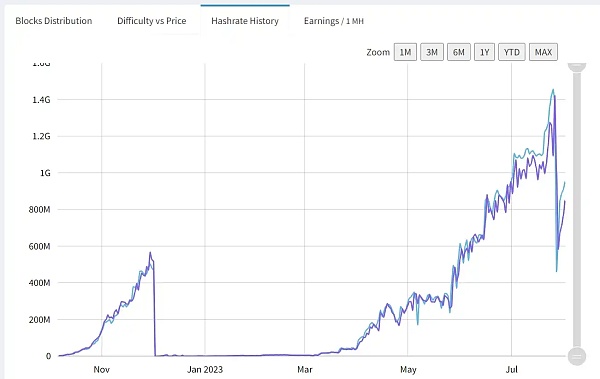 Dynex:总体呈上升趋势。最近由于算法升级,算力有所下降。