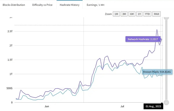 Neurai:最近,算力一直在上升,其中大部分增长来自个体矿工。另一方面,已知池的计算能力一直在下降。