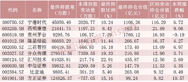 上周北向资金对1491只股票的持股数增加,对其中97只股票的持股增加数超过1000万股,从持仓市值变动情况来看,Choice数据显示,本周北向资金对15只股票的持仓市值增加超过5亿元,对宁德时代、药明康德、贵州茅台持仓市值增加金额居前,分别增加116.29亿元、21.89亿元、16.93亿元。