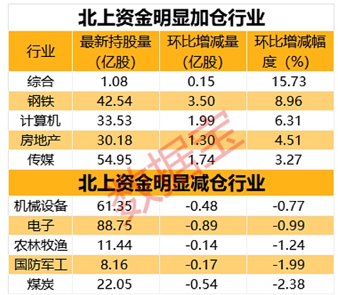 分行业来看,31个行业中22个行业均获得北上资金加仓,综合、钢铁、计算机、房地产、传媒行业持股量环比增幅居前,周持股量环比增长在3%以上。煤炭、国防军工、农林牧渔持股量小幅环比下降。