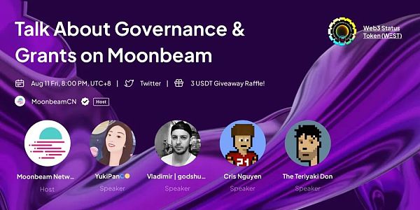 为了让治理这个略显学术讨论的枯燥话题更有话题聊点,也帮助大家理解治理机制背后的民主含义,Moonbeam社区将于8月11日(今天)晚上8点举办Twitter Space,深入探讨Moonbeam治理和生态Grants。
