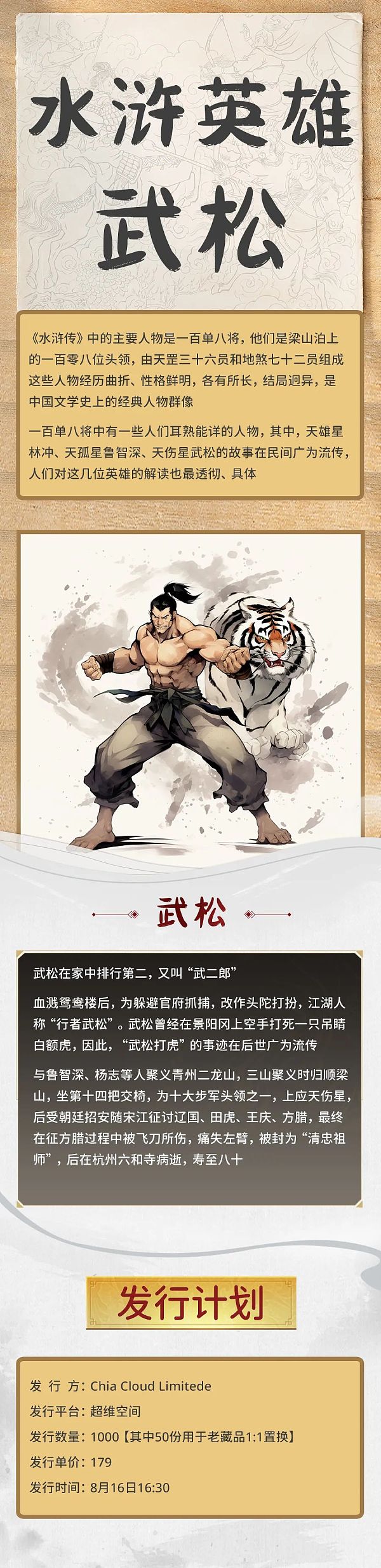 超维空间数字藏品发售:水浒英雄系列第一期上线「武松」8月16日限量秒杀