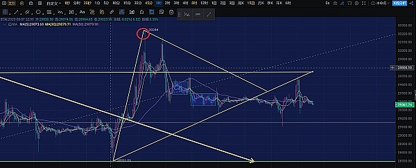BTC今日操作建议:29450-29550区间入场空单 目标看28800的支撑情况,防守28750
