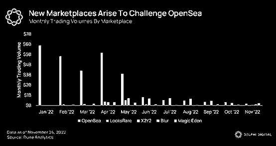 至此,垂直市场的趋势并不意味着Opensea从此走下坡路。它仍然是一个非常好的业务(可能是盈利的)。但这一趋势确实为更专业的市场提供了蓬勃发展的机会——甚至可能超过Opensea。