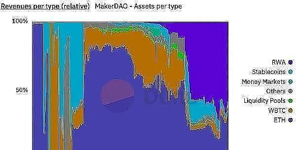 根据Dune上MakerDAO仪表板的数据显示,当前MakerDAO上RWA资产占比达到47%,而RWA资产所带来的收益更占MakerDAO总收益的60%。