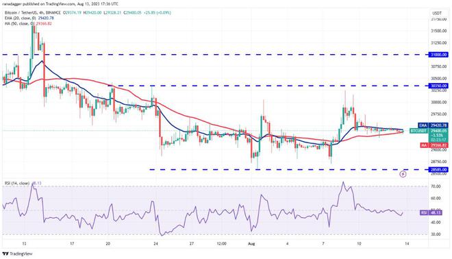 从4小时图来看,比特币仍低于30750至31250美元阻力带。周二回调后,比特币位于50日和200日均线下方,确认了近期看跌的价格信号。值得注意的是,50日均线向200日均线收敛。看跌交叉将使28500美元以下和27500至26850美元的支撑带进入视野。