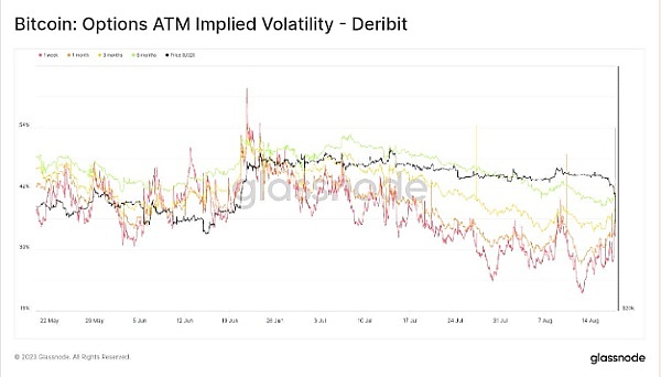 此外,Glassnode的数据显示,该事件影响了期权的隐含波动率(OIV)。OIV 通常用于对期权合约进行定价,它利用供给和需求来确定市场强度和交易者可能的行动。