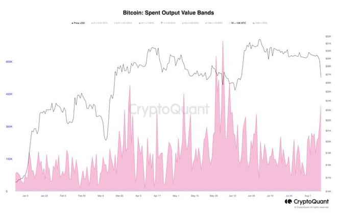 链上数据还显示,比特币的大户在“抛售之前和抛售期间”的支出活动加倍。比特币未能突破 30,000 美元的阻力位并维持上涨趋势,导致许多人撤回了积极的关注。尽管鲸鱼消费有所增加,但对扭转市场影响并不大。