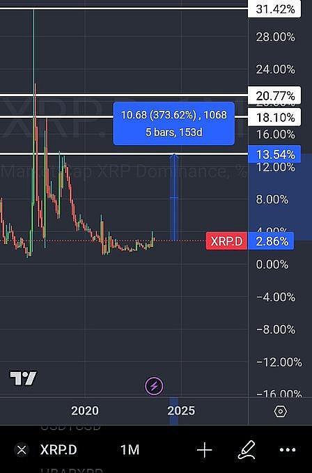 根据Irish red crypto 的说法,“XRP 主导地位的下一步是回升至 13%,按当前市值计算,#XRP 的市值 = 169bill(每 XRP 3.30 美元)。这只是一个开始。您还没有准备好接受 XRP 将要做的事情。每个人都只顾短期利益,而忽视了大局。”