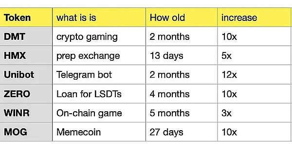 今天我想深入研究当前表现优异的 6 个代币。在并列比较之后,分析使它们表现如此出色(或看起来如此)的共性、模式和特征。