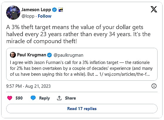 另一方面,如果美国央行表示容忍通胀率高于当前 2% 的目标,这将是比特币粉丝一直警告反对的货币贬值的官方承认。