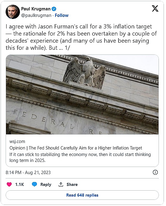 周一,《华尔街日报》还刊登了奥巴马政府期间总统的最高经济顾问贾森·弗曼 (Jason Furman) 的专栏文章,他在专栏中敦促美联储考虑将通胀目标从 2% 上调至 3% 。