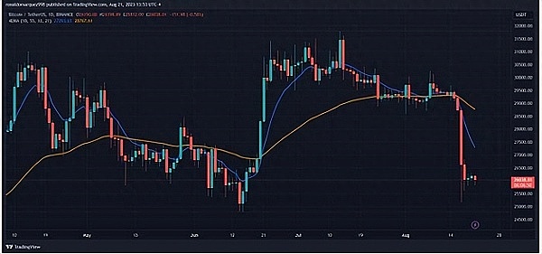 市值最大的加密货币比特币 (BTC) 在 29,000 美元大关附近长期盘整后下跌。由于未能维持这一水平,导致价格跌至 26,000 美元。