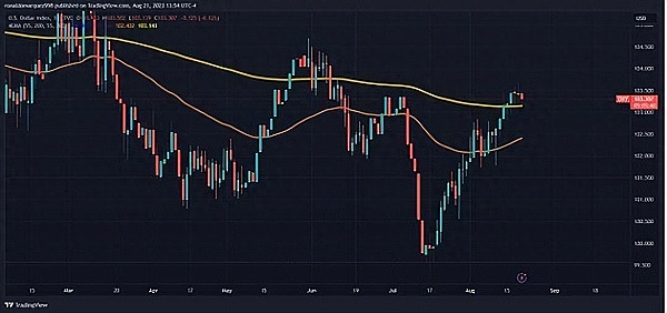 尽管如此,这种情绪在 7 月 14 日发生了转变,当时美元指数 (DXY) 开始强劲反弹,从 99 点飙升至目前的 103 点。