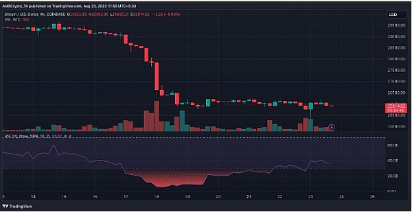 这段安静的时期导致相对强弱指数 (RSI) 保持在 36.16。尽管RSI值表明BTC已接近超卖区域,但该代币很可能将继续徘徊在25,000美元至26,000美元附近。