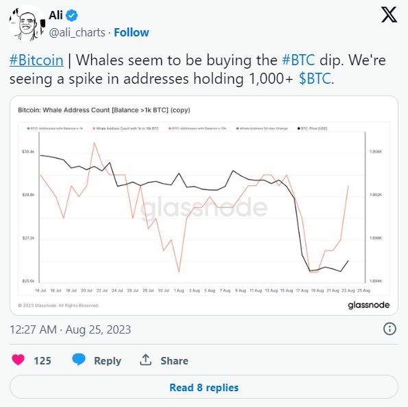 另一个积极的迹象是,在上周的市场崩盘之后,比特币鲸鱼最近一直在积累。自上周跌至 25,000 美元以来,比特币鲸鱼迄今已积累了价值超过 3 亿美元的比特币。