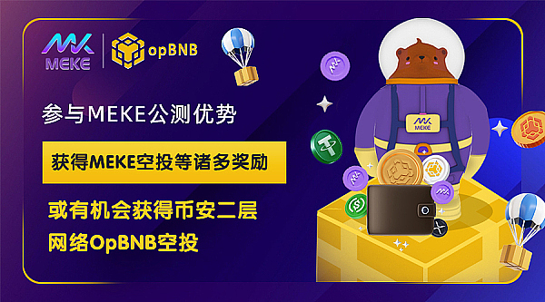 从2010年比特币空投至今,“空投”被越来越多的玩家接受并期待,通过“空投”薅羊毛发家致富的羊毛党也大有人在。如今,MEKE也正在公测阶段,像上述提及的优秀项目一样,参与MEKE公测的用户即可获得平台通证MEKE空投,并增加opBNB的获奖几率,可以说,参与MEKE公测和分享MEKE都可能有着不亚于早期参与DYDX、Optimism 、Arbtirum等明星项目测试的福利。由于平台设计了独特的发行机制,MEKE 平台通证发行有限,因此越早参与公测越早参与分享的用户可获得越多福利。