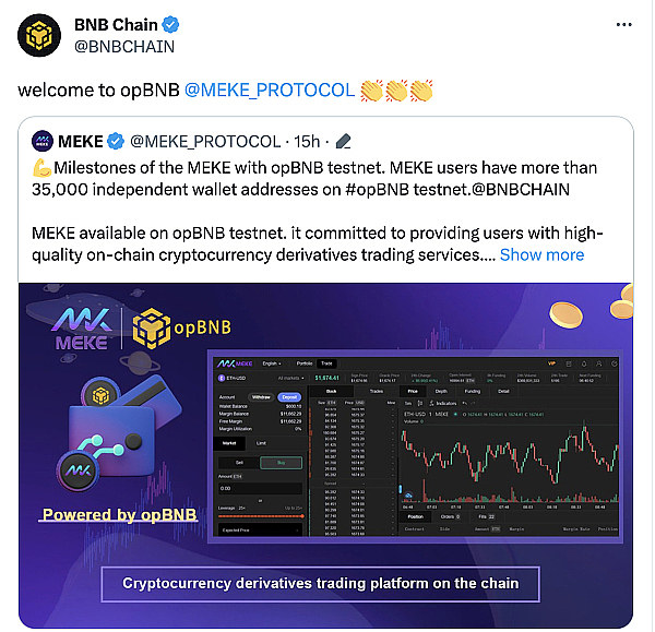 币安链在推特对MEKE进行了转发: