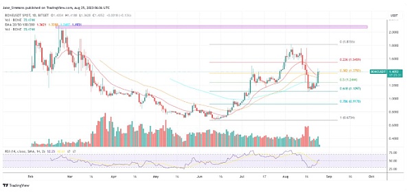 之后,BONE 将进入价格发现阶段。目标可能是 1,618 斐波那契扩展位 2.25 美元。