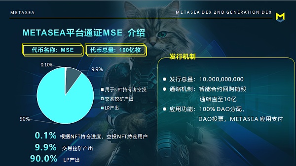 MSE分配方式:0.1%:当全网有10,000个或以上地址持有10个NFT时,触发智能合约,发放0.1%的MSE。这是数字奇迹的开始。
