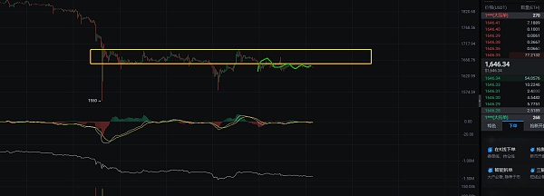姨太的1H的结构,姨太的结构走势也是弱势,一直沿着1H的中枢下沿震荡,也没有啥方向,也没有拉回中枢内部震荡,就是下沿一点点的位置,就好像特意的一样,就算往上拉几刀就基本拉回去震荡,但是也没有这么做,走势很奇怪,还是关注大饼为主。
