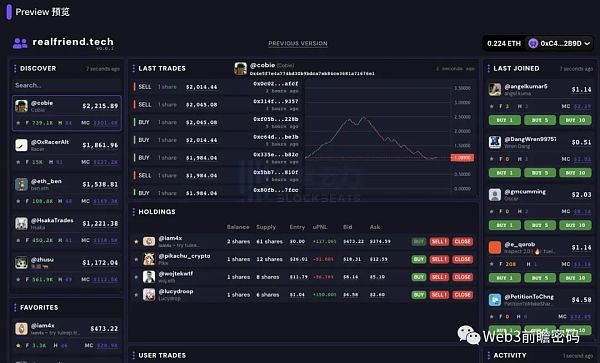 friend.tech 通过与 Twitter(现更名为 X)强绑定的方式,让用户可以通过 Base 链的以太坊购买任意 friend.tech 上用户的份额(Share),获取与其直接对话的权利,并且还有可以从中获利的可能性。friend.tech 变相的将用户的注意力赋予了成本,你要想获得更多的优质信息,意味着需要投入对等的资产。