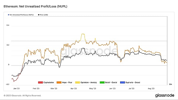 盈利程度也可以通过查看未实现净损益(NUPL)指标来检查。它基本上是未实现利润和未实现损失之间的差异,衡量整个网络是否处于盈利或亏损状态。