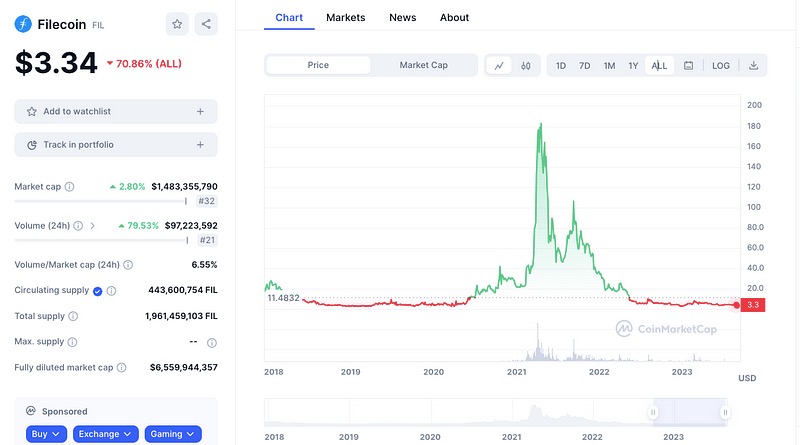 Filecoin在2017年拿到红杉资本、A16Z等8大顶级投资机构的上亿美金支持,2020年以26刀的价格上线,半年以后,幸遇大牛直接干到237美金,项目方于2023年3月14日升级了链上技术,虚拟机正式上线.