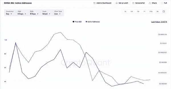活跃地址衡量 24 小时内在区块链平台上参与/交易的个人数量。因此,使用柴犬进行交易的市场参与者明显减少。