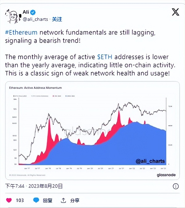 加密货币交易专家阿里·马丁内斯的分析为讨论增添了一层额外的谨慎。马丁内斯表示,如果以太坊的价格跌破 1,600 美元至 1,550 美元的范围,可能会引发 37% 至 45% 的大幅调整,可能导致价格跌至 1,000 美元。这种观点基于以太坊的网络基本面,每月活跃以太坊钱包数量的下降就证明了这一点,表明区块链活动减少。