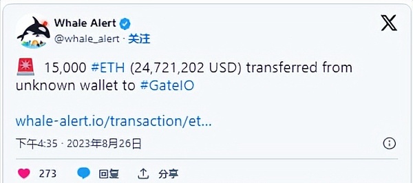 15,000 ETH 至 Gate.io:价值约 2470 万美元的 15,000 ETH 的重大转移已经发生,引发了对其影响的讨论。