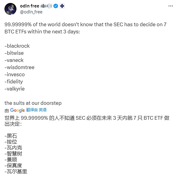 对于热切等待 SEC 决定的投资公司来说,最终期限定为次年 3 月中旬。这种情况促使观察人士关注社交媒体,其中一条推文强调了这些即将做出的决定的模糊性。这条推文还强调了情况的严重性,表明监管机构的裁决对该行业的未来具有巨大意义。